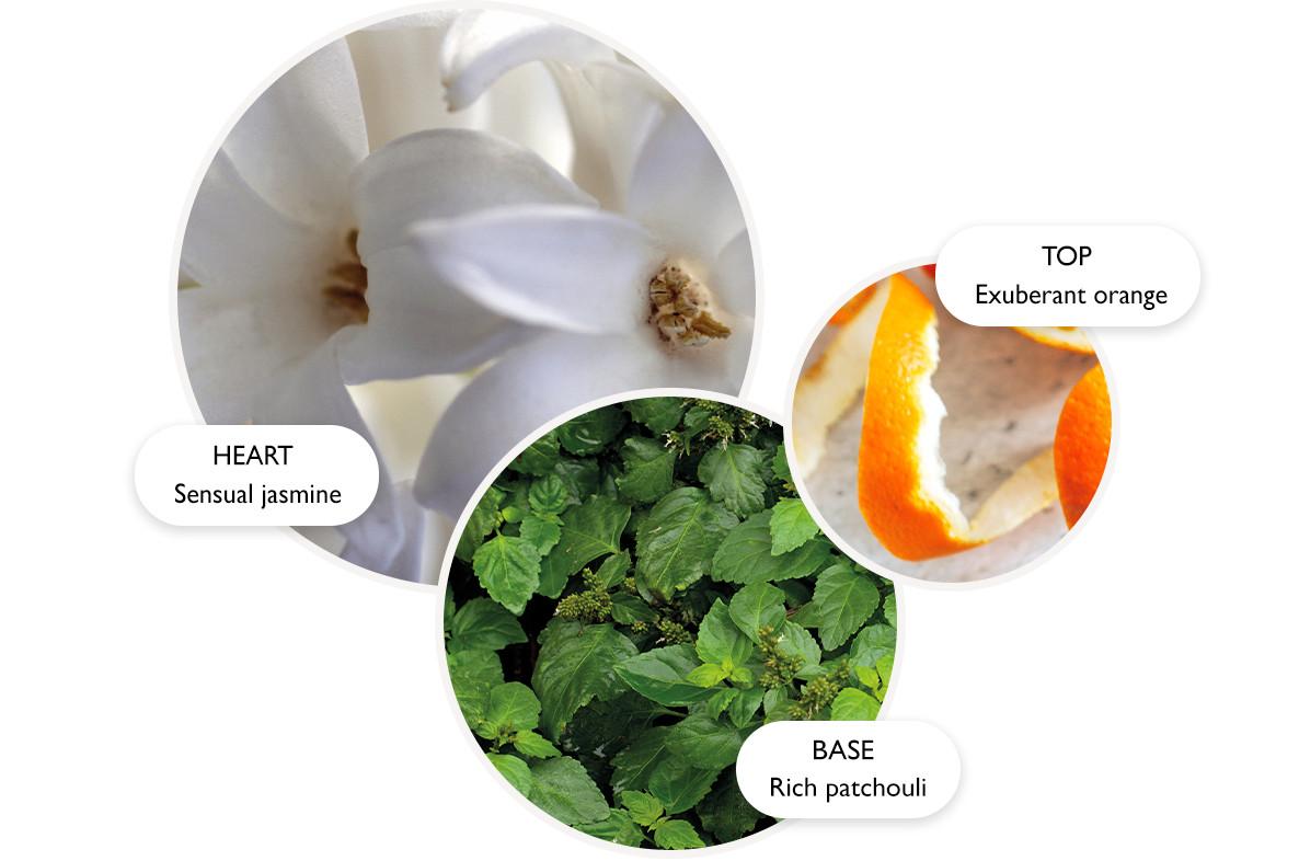 Note ambrate e floreali si elevano lentamente dal cortile di un antico tempio. Un'infusione rotonda di arancia succosa e gardenia cremosa si unisce silenziosamente ad un inebriante gelsomino e al miele dolce. Patchouli e sandalo donano un tocco caldo e profondo. Prenditi un momento per te per curare il benessere di mente e corpo.