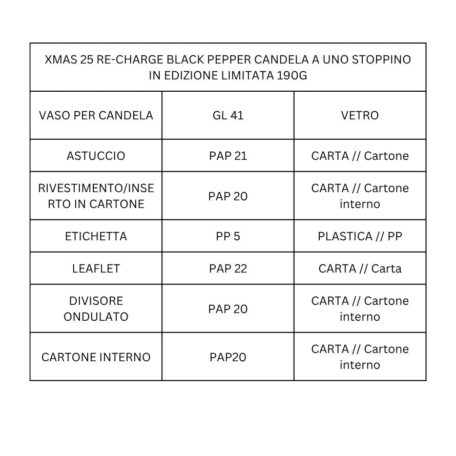 Re-charge Black Pepper Candela a uno Stoppino in Edizione Limitata 190g
